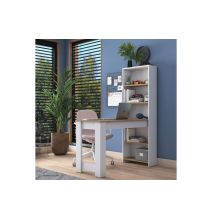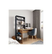 Escritorio-Librería de Melamina, Gris Oscuro-Blanco-Natural, 117x46x160 cm, Mueble Versátil para Oficina o Estudio.